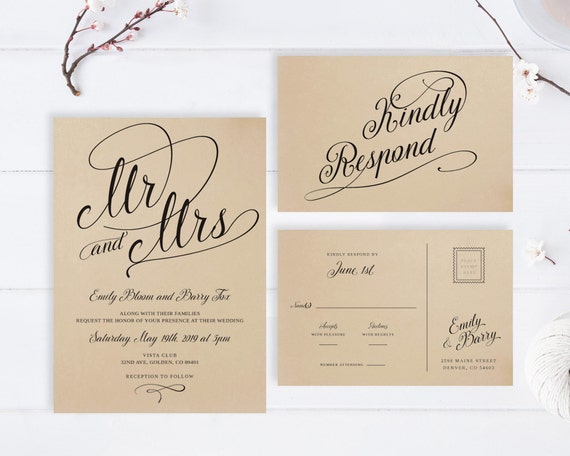 Kraft Paper Rustic Wedding Invitation Set Template By Violetprints