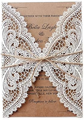 Picky Bride 25 Pcs Rustic Wedding Invitations Cards Vintage Kraft