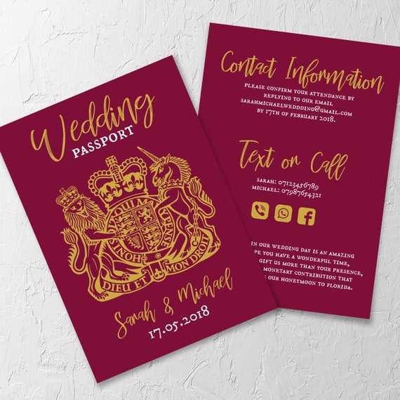 Burgundy Gold Passport Boarding Pass Travel Themed Wedding Etsy